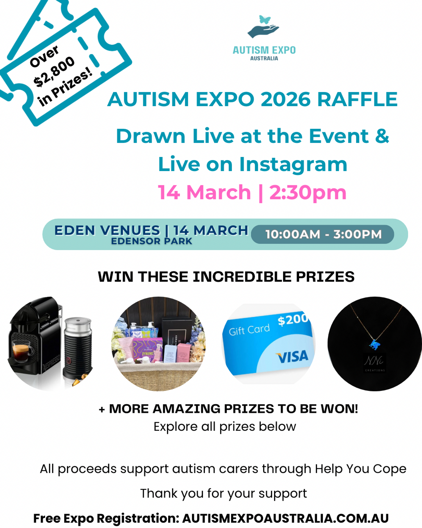 This raffle is proudly fundraising to support autism carers and families through Help You Cope, a registered not-for-profit dedicated to empowering carers with education, wellbeing programs and community connection.