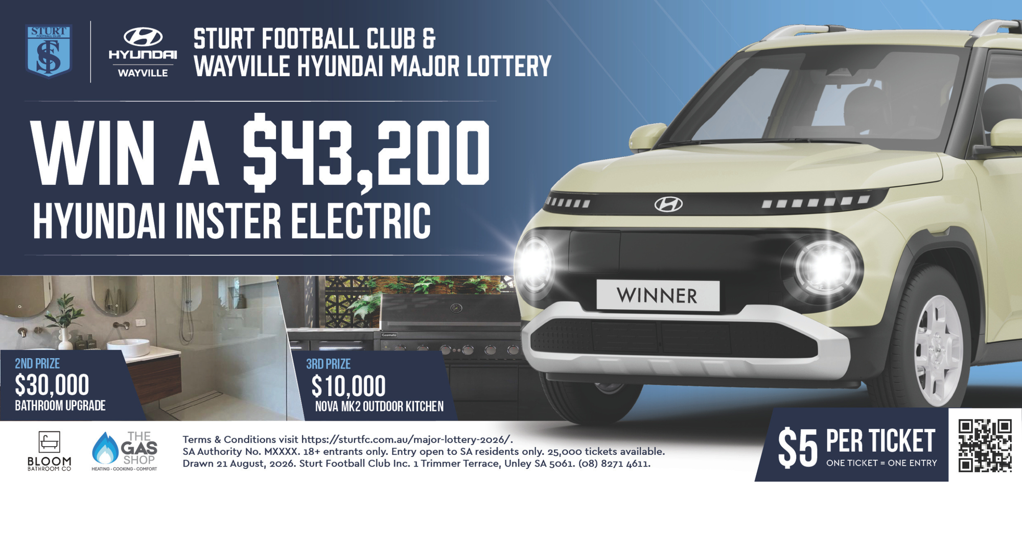 Proudly supported by Wayville Hyundai, Bloom Bathroom Co and The Gas Shop Unley, this year’s Major Lottery plays a vital role in strengthening Sturt Football Club. Every ticket purchased contributes to the construction of a permanent perimeter fence around Unley Oval — an important investment in the safety, accessibility and long-term sustainability of our home ground. Proceeds will also support the club’s broader community impact initiatives and help secure a strong future for Sturt, both on and off the field.